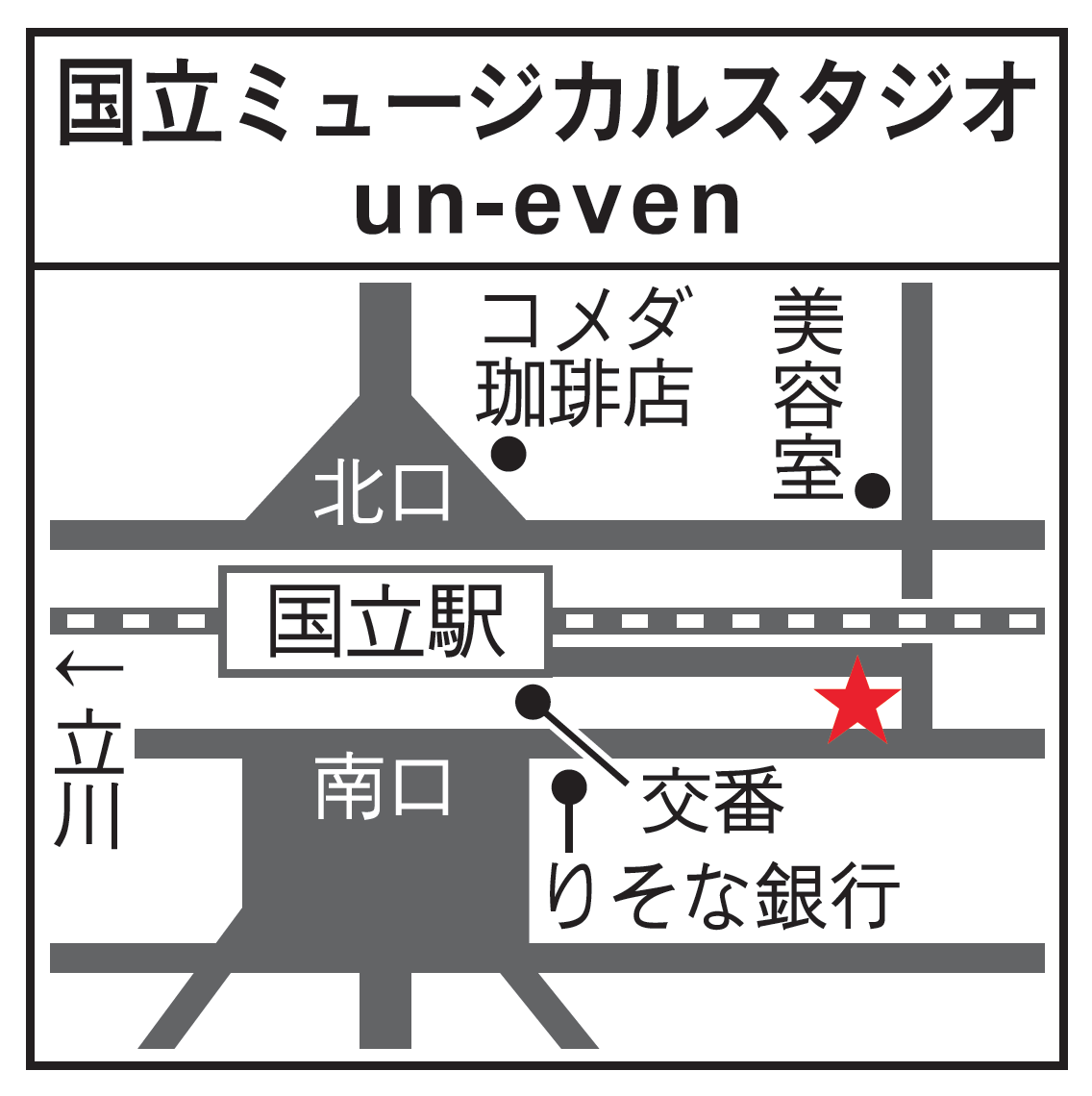 ※国立駅改札出て、正面のnonowa右脇の道を直進、つきあたり右側の看板の出ているビル3階 徒歩1分